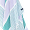 - Features a plush and durable weave with an elegant puprple-teal striped pattern.